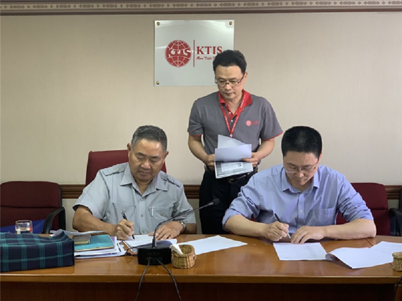 2019年4月24日,泰国KTIS集团与浙江欧亚轻工装备制造有限公司在泰国KTIS集团总部举行签约仪式,正式签署了50台EAMC全自动纸浆模塑成型定型切边一体机的设备购买合同。泰国KTIS集团董事长与浙江欧亚轻工装备制造有限公司董事长共同在合同上签字。